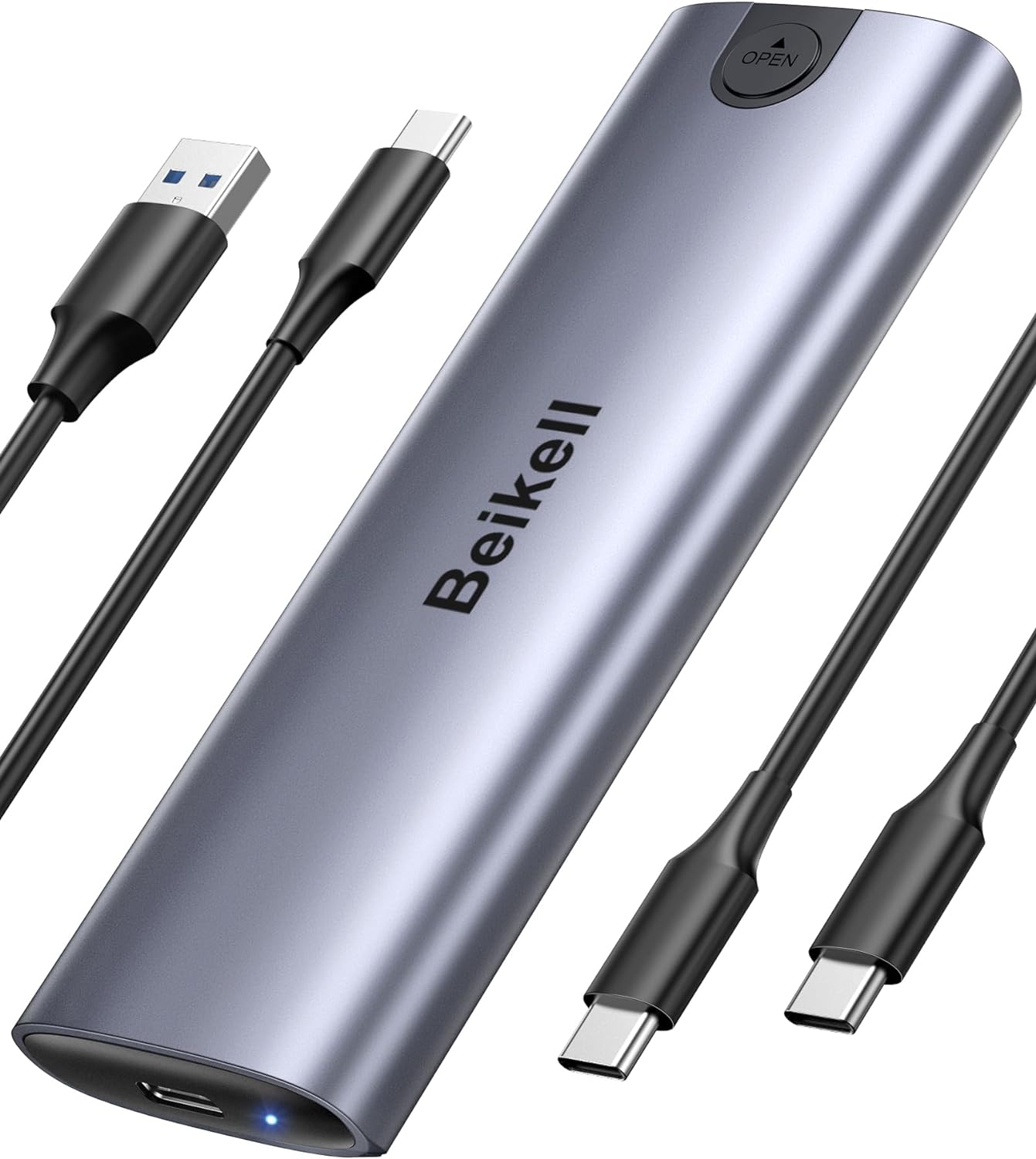 M.2 NVME Enclosure, Beikell Tool-Free 10Gbps M2 SSD Enclosure USB 3.2 Gen 2 NVMe to USB Adapter for 2230/2242/2260/2280 M.2 NVMe/SATA SSD of M-Key or M+B Key with USB C to C and USB A to C Cables