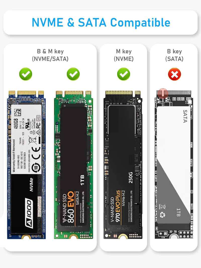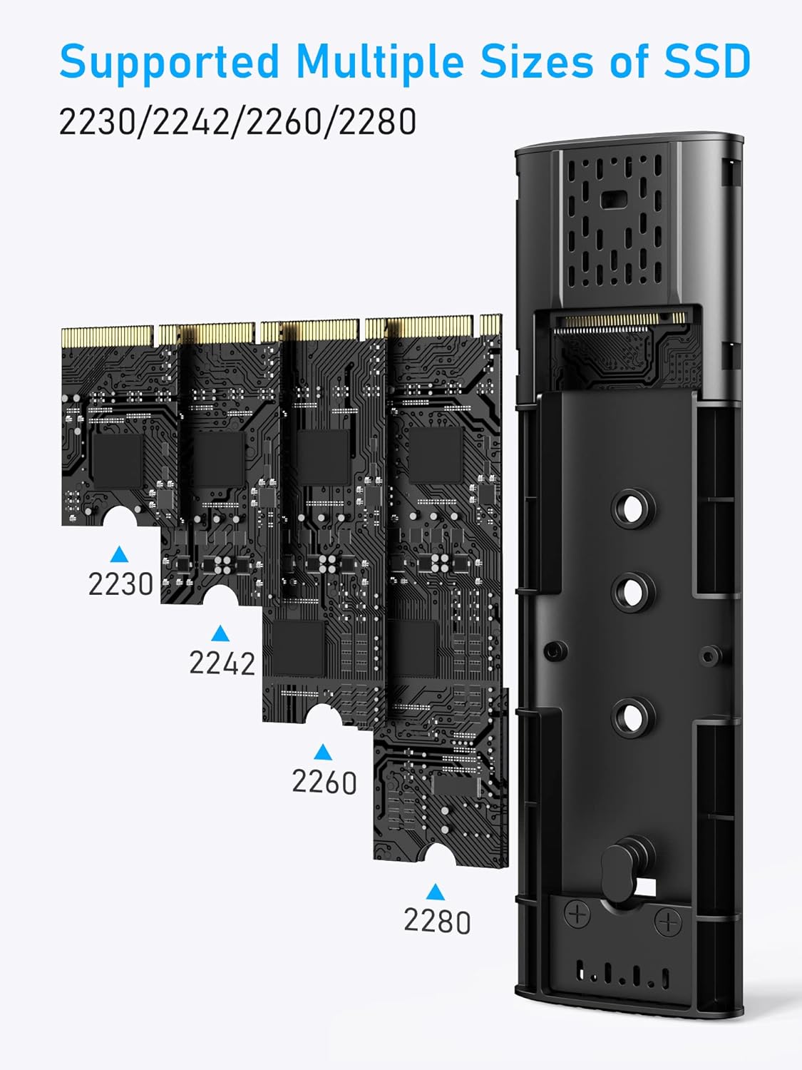 - 👍【Wide Compatibility】Applicable to M.2 NVME/SATA SSD, supported hard disk size: 2280/2260/2242/2230. Compatible with Windows7/8/10/11, Mac OS, Linux and other systems. you can connect your laptop, desktop, phone, tablet to access your files directly. Plug and play, no additional driver or software required.