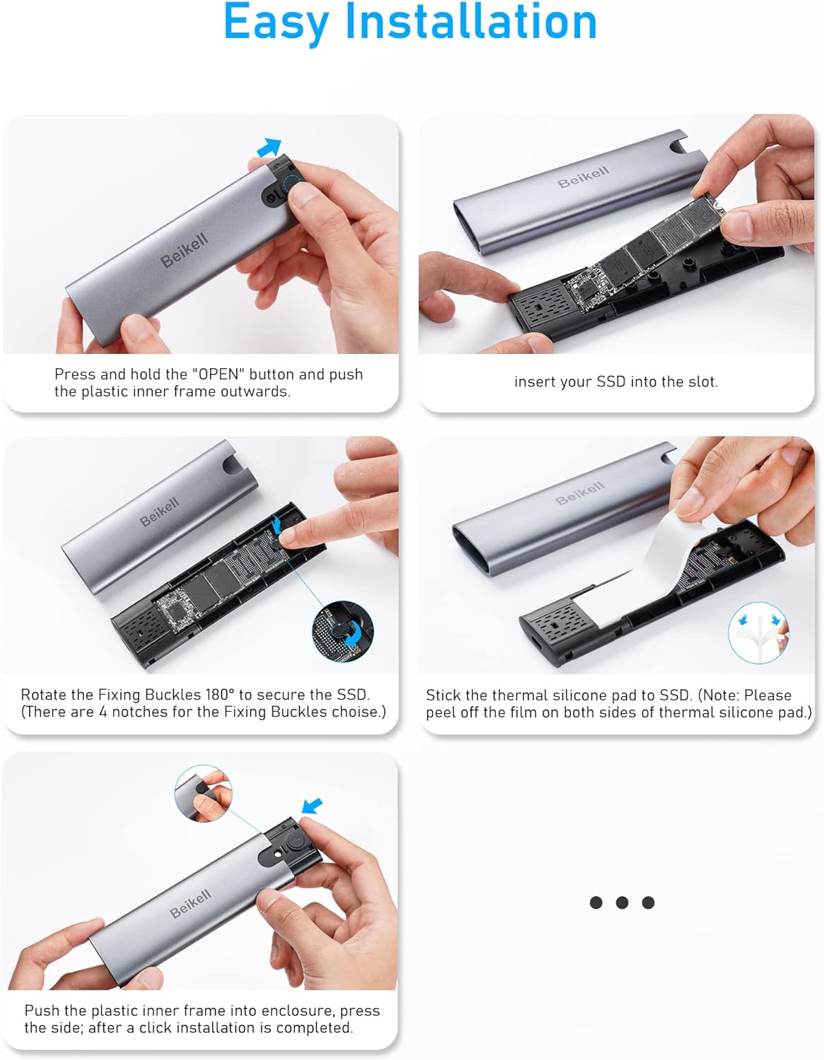 - 👍【10Gbps High Speed Transmission】Beikell high speed NVMe enclosure adopts the latest USB C 3.1 Gen2 interface with transfer speed up to 10Gbps (backward compatible). Support UASP/TRIM/S.M.A.R.T protocol, accelerate SSD hard drive read and write speed, transfer large files in seconds, reduce waiting time and help you work efficiently.